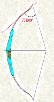 La traction sur la corde pour obtenir cette allonge va déterminer un angle entre la corde et les branches. La meilleure efficacité est obtenue par un angle de 75 à 80°. Ne jamais tirer au delà de 90° car l'arc n'est plus adapté au tireur.