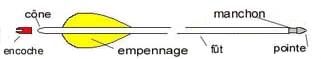La flèche classique est composée d'un tube métallique ou en fibre de carbone, d'une pointe qui est fixée au tube à l'aide de colle ou de résine, d'un empennage composé de trois ou quatre plumes collées à l'arrière du tube à des endroits et selon des angles bien précis, à l'aide d'un appareil spécial ( empenneuse ), et d'une encoche disposée également de manière précise.