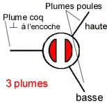 L’empennage à quatre plumes présente une simplification dans l'activité de loisir. Le positionnement de la flèche sur la corde n'est plus déterminé par la plume coq et les plumes poules. L'importante