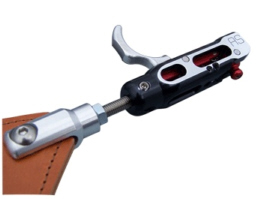 En arc à poulie il est utilisé un appareil appelé décocheur qui apport un énorme avantage par rapport à la palette utilisée en recurve : stabilité et décoche qui reste invariable à chaque sortie de flèche. Il existe 2 type de décocheurs, un qui s'accroche via une sangle au poignet, la décoche se faisant au moyen d'une queue de détente actionnée par l'index. L'autre qui est tenu dans la main retenu par les doigts et dont le mécanisme est déclenché par le pouce.