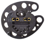 Réglé avec une équerre, il convient sur un arc à poulie d'avoir une valeur à 0mm (équerrage parfait du tube avec la corde). Pour le réglage de l'alignement latéral et du détalonnage il existe un appareil de précision créé par Franck Karsenty et qui permet une mise au point extraordinairement précise de ces 2 points importants.